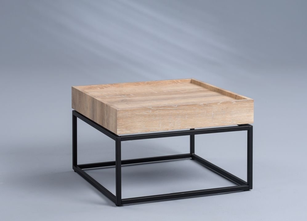 Ausführung MDF Dekor Wildeiche Deckplatte Kastenform innen hohl Gestell Metall schwarz